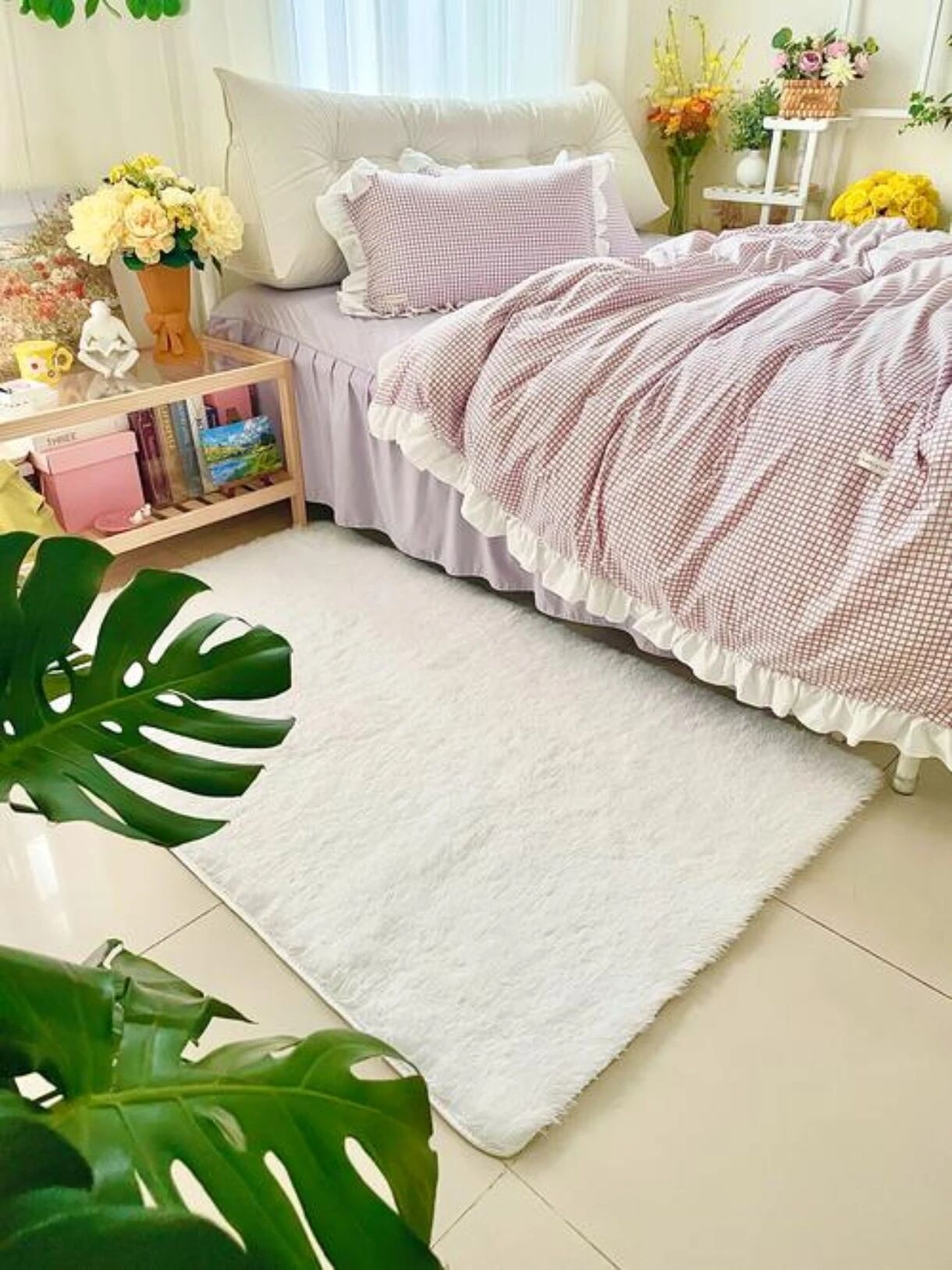核心优点:手感柔软细腻,亲肤不扎人;吸水性超强,速干不返潮;材质轻盈,方便清洗晾晒。小缺点:耐磨性一般,不适合高频活动区;长期踩压容易变形,需要定期梳理。适配场景:卧室、浴室门口、床边。浴室门口铺一块,洗完澡出来踩上去,瞬间吸干脚上的水,避免滑倒;卧室床边铺,亲肤柔软,提升睡眠幸福感。 选购小技巧:选密度高的,不易掉毛变形;浴室门口选带防滑颗粒底的,安全系数更高。